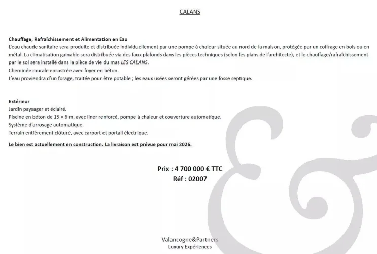 Ideally located at the edge of the village of Eygalieres, this beautiful stone house entirely restored will accommodate you on 266 sq m of floor space with its 5 bedrooms en suite, its reception rooms in open enfilade as the living room with fireplace - the dining room - the kitchen of a surface of 75 sq m, giving in the south on a terrace of the same surface. In extension of the building, your eye will be attracted by a large swimming pool of 15 x 6 m where you will be able to swim and enjoy the shaded relaxation areas while contemplating the view on the "Grand Calan". The privacy and calm will be appreciated with 7,490 sq m of land, entirely fenced with a gate, and a park planted with various Mediterranean species including a truffle oak grove.