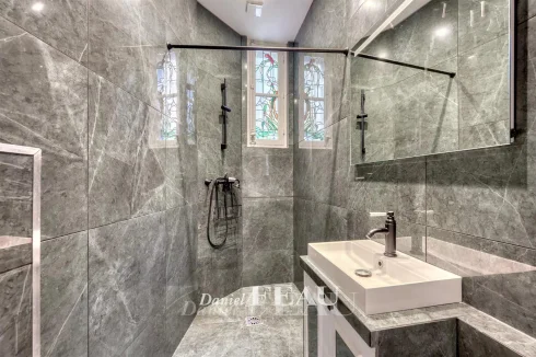 Offering 159.04 sqm of living space as defined by the Carrez Law, it includes a rotunda living/reception room opening onto a balcony, a dining room, a spacious separate kitchen with dining facilities, two bedrooms with shower rooms opening onto a continuous balcony, a third bedroom, a shower room with a wc, and a dressing room. A second wc would be possible.