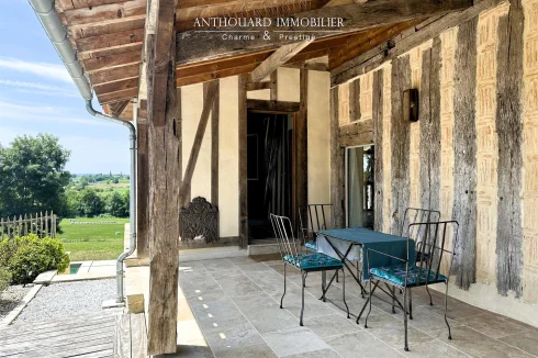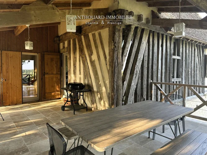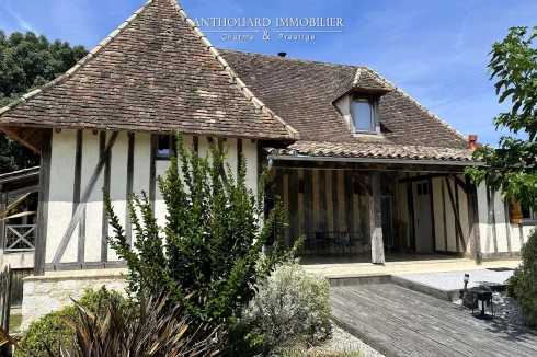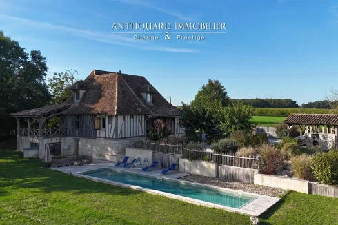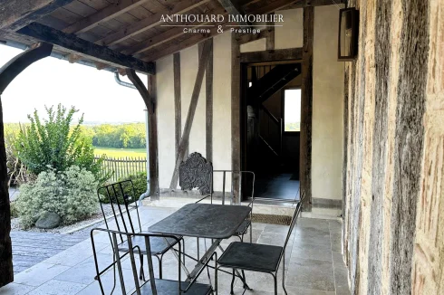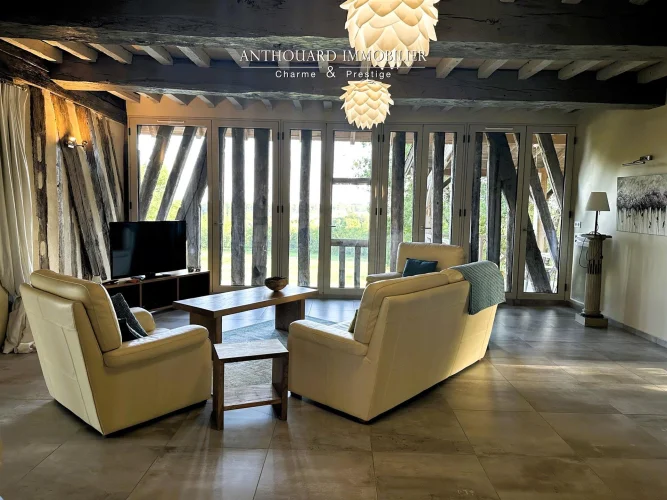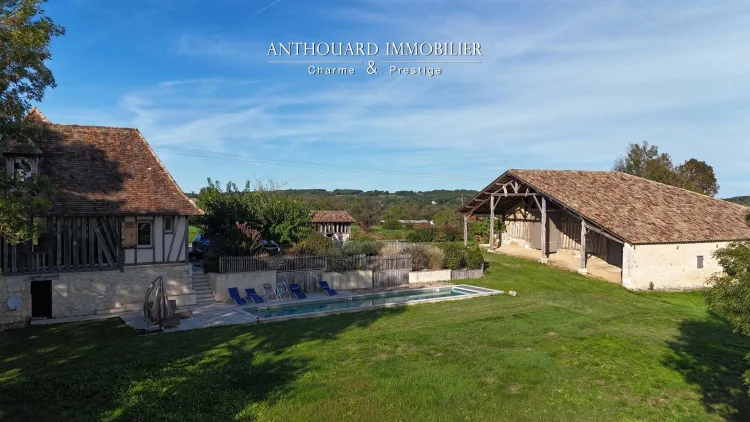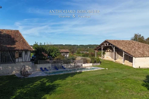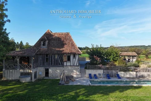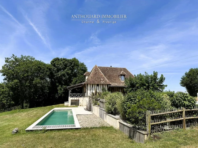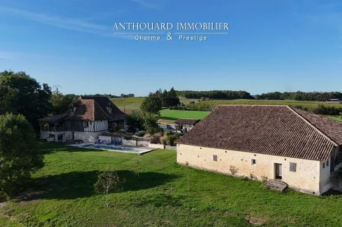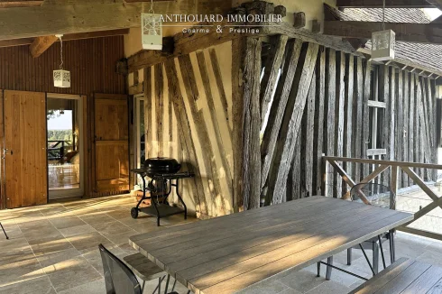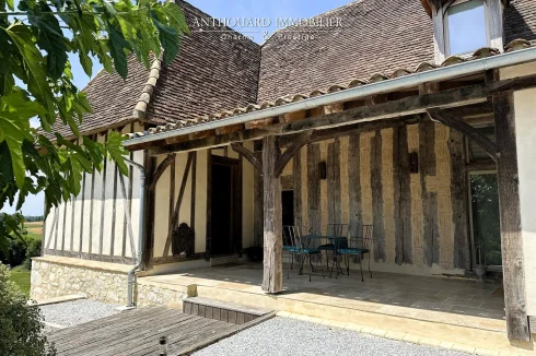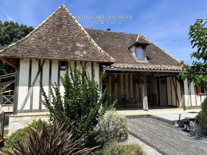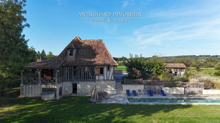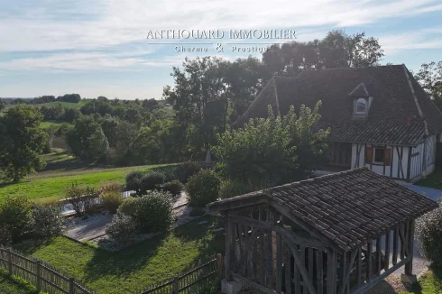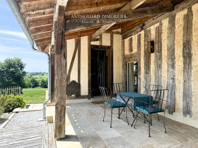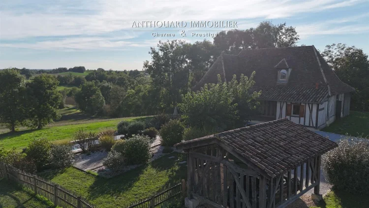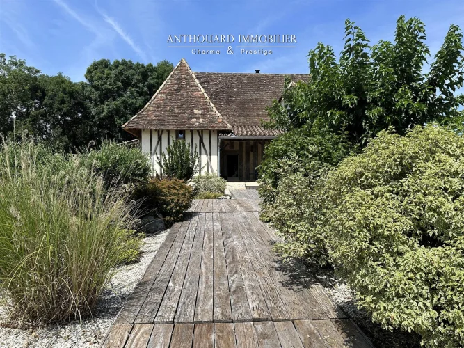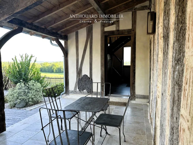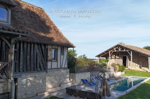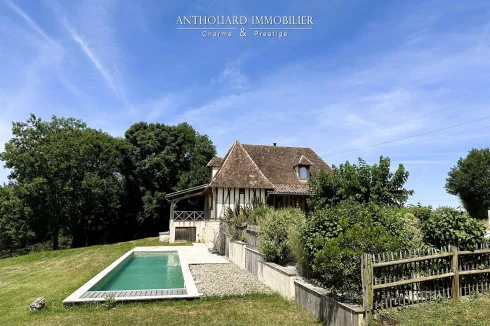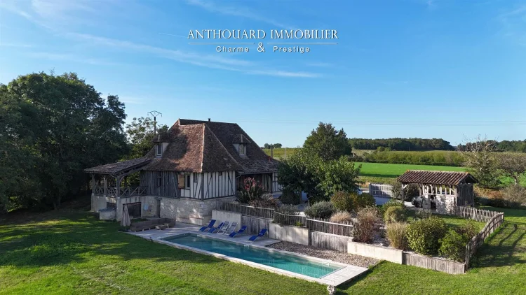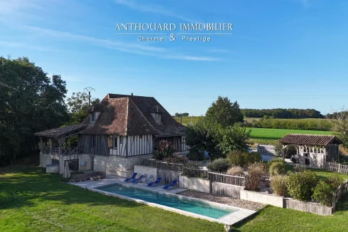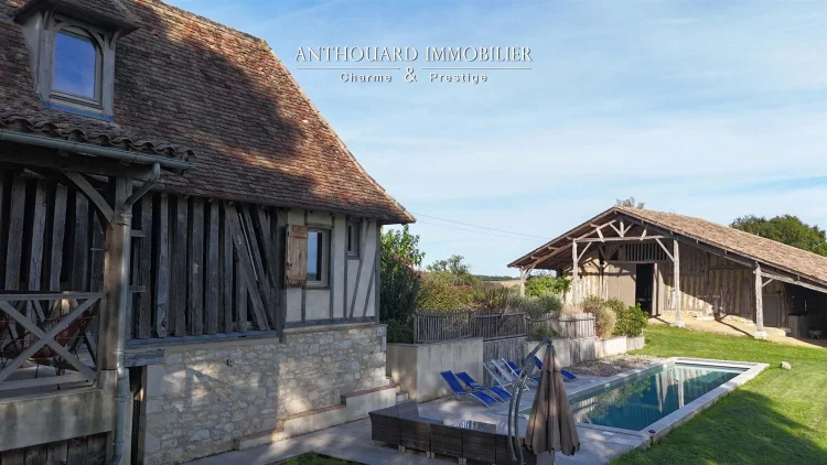 Magnificent half-timbered country house with swimming pool, barn and dominant views