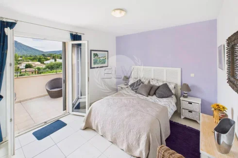 Upstairs, the comfort continues with two bedrooms, one of which has a balcony offering a superb view of the hills, as well as a bathroom and a separate toilet.