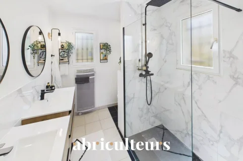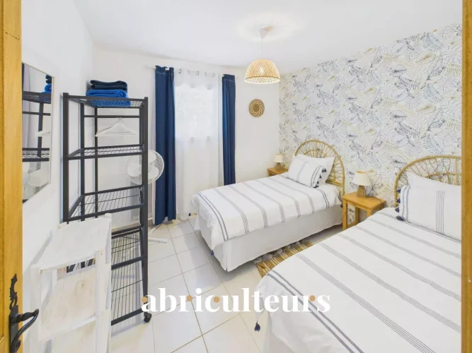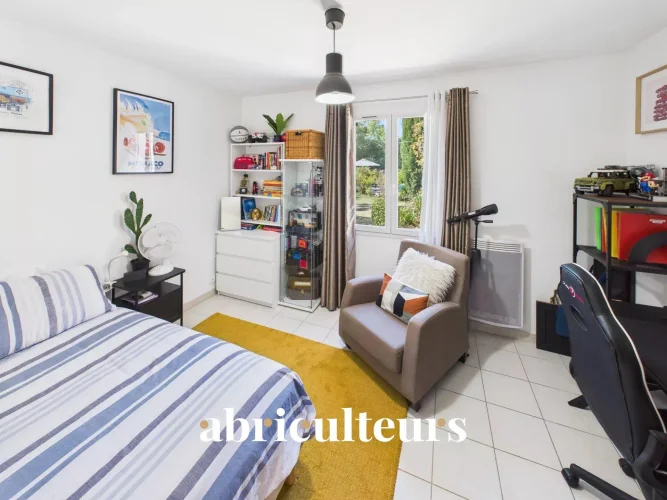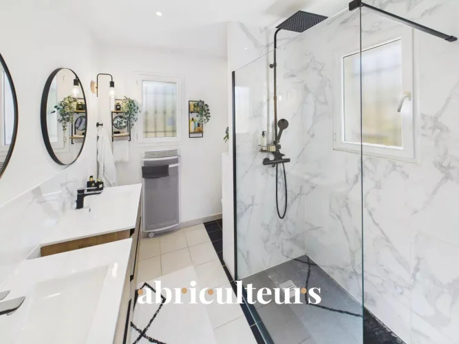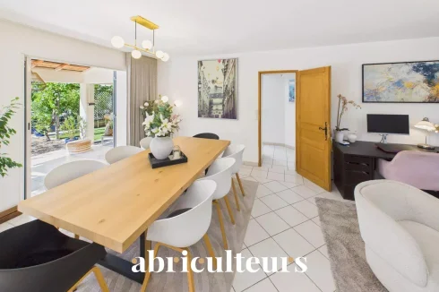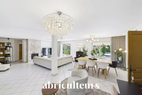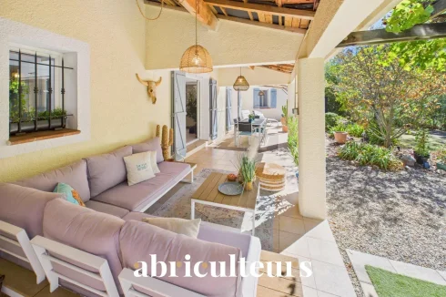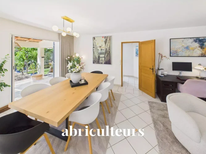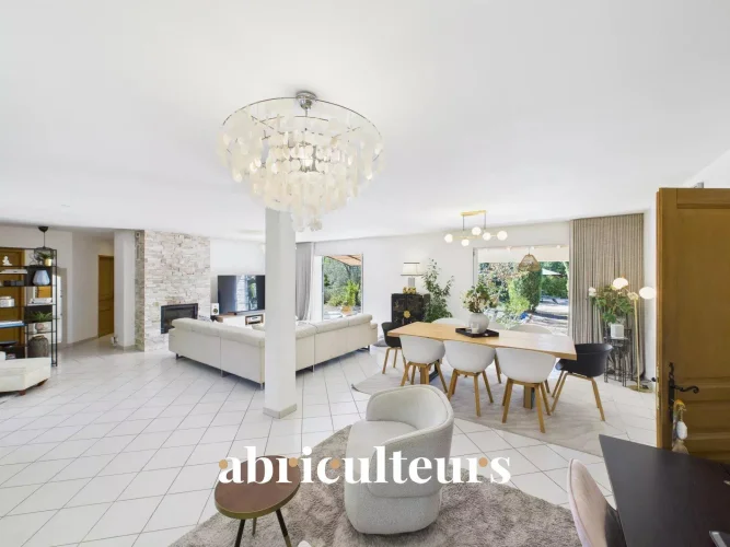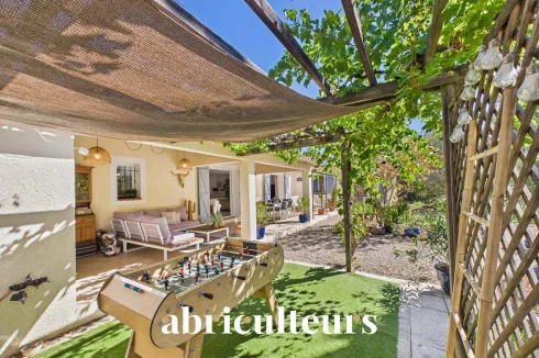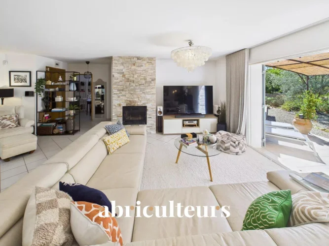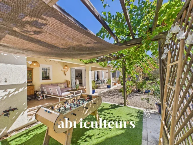 Set on a landscaped plot of over 2,200 m², this property offers high-end features: swimming pool (4x8m), south-facing garden, pétanque court, automatic irrigation system, solar panels, motorized gate, and enhanced security.
