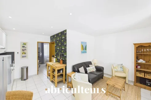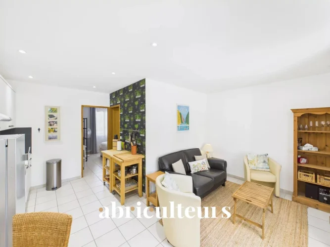 Gîte T3 (45 m²): Living room with open kitchen, two bedrooms, shower room, private terrace