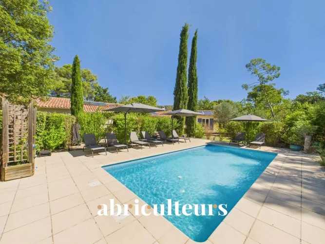 Discover this stunning single-storey property, consisting of a main villa and two independent guesthouses, nestled at the foot of the Provençal hills. Located in a preserved natural setting, just minutes from Lake Sainte-Croix and the majestic Verdon Gorges, it enjoys the privileged location of the charming village of Aups.