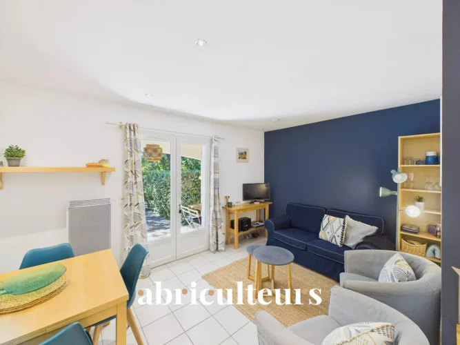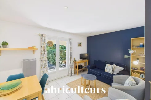 Gîte T2 (35 m²): Living room with open kitchen, bedroom, shower room, private terrace