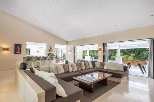 The 1,600 sqm flat landscaped garden that surrounds the house offers fruit trees as well as a heated salt pool. Several covered parking spaces outside complete this pretty property.