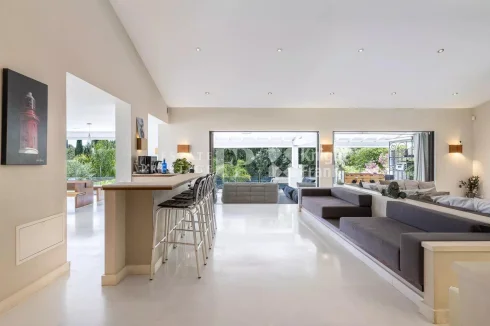 Antibes: Located in a sought-after area in absolute calm a few minutes walk from the beach and shops, elegant fully renovated villa of approximately 350 sqm distributed