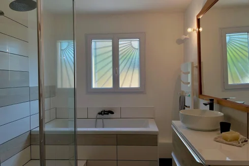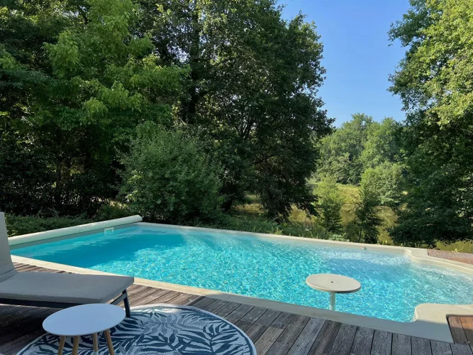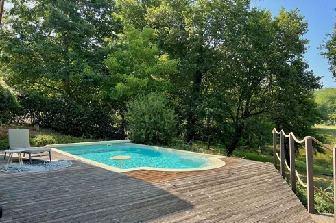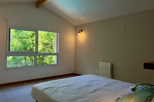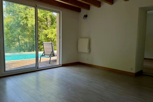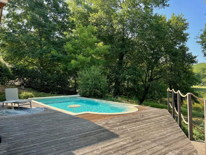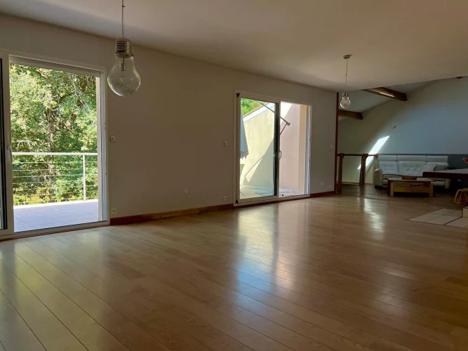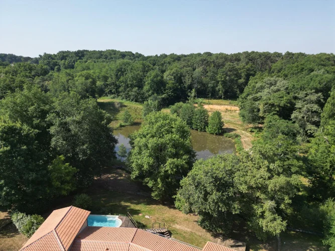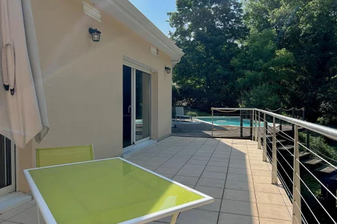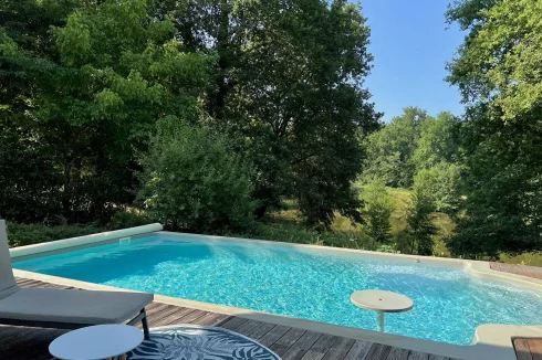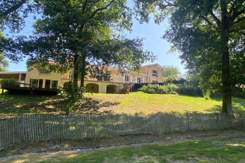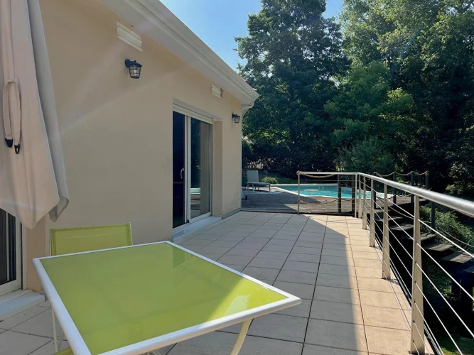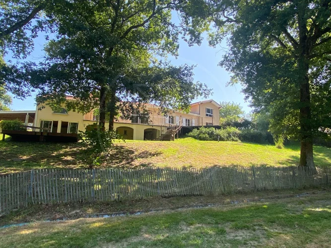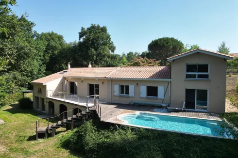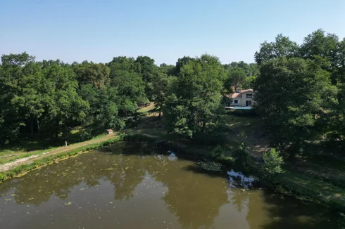 Set in an exceptional location, this contemporary home offers the rare combination of easy-living, complete privacy, and uninterrupted views of a natural pond and surrounding woodland ? all in a peaceful, nuisance-free environment. On the main level, the living space unfolds into a generous open-plan layout with sitting room, dining space, and a fully equipped kitchen ? perfect for both everyday living and entertaining. Large windows open onto the terrace overlooking the stunning natural surroundings, flooding the interiors with light. The property features a split level master suite and 3 bedrooms on the ground floor, offering ease of living and a sense of flow throughout. On the garden level, a separate office or fifth bedroom provides flexible space for remote work, guests, or hobbies. Every detail of this home has been meticulously maintained and presented in perfect condition ? ready to move into without any work required. Outside, nature takes center stage. Yet only a 5 minute drive to the town of Créon with plenty of restaurants, commerce and schooling. The famous cycle path from Bordeaux to Sauveterre can be joined in the town as well as hiking paths and other activities (4.98 % fees incl. Vat at the buyer's expense.)