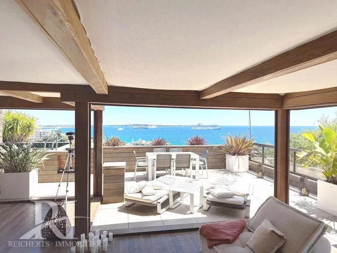 Undeer Offer / Sole Agent / Ideally located in Cannes in Croix des Gardes district in a residence with swimming pool , this 2-bedroom top-floor apartment 100 sqm offers panoramic sea views and excellent amenities.