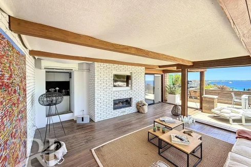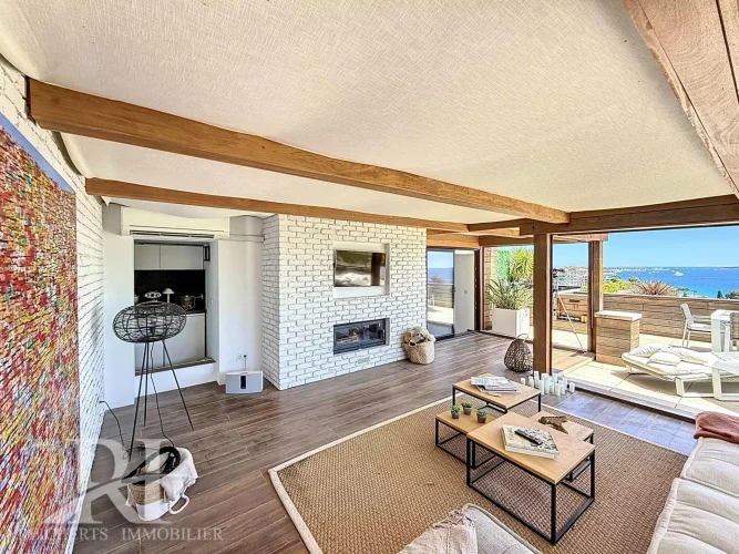 This property, rare on the market, consists of a living room with a modern open-plan kitchen opening onto a terrace with a full sea view, a master bedroom opening onto a sea-view terrace with a shower room, another bedroom with a shower room and a separate toilet.