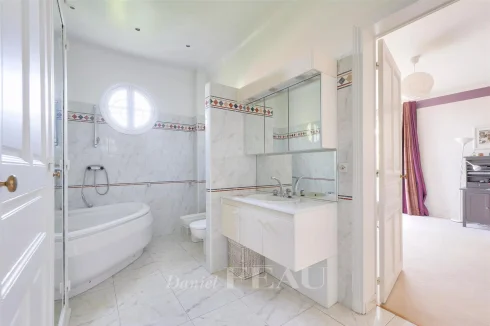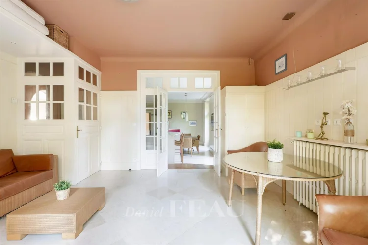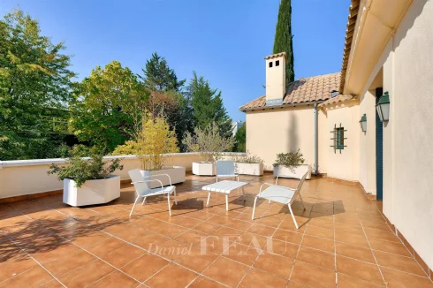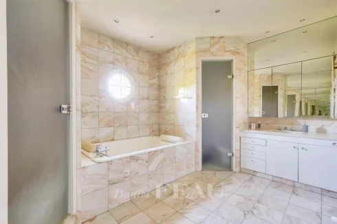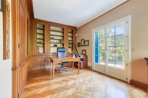 This 400 sqm property with an architectural style typical to Italy’s Tuscany region is in a peaceful residential neighbourhood just a short distance from the capital. Set in a leafy 1663 sqm plot, it includes an entrance hall, a double living/reception room with a fireplace, a spacious dining room, a kitchen with dining facilities, a drawing room, a study, and two bedrooms, each with a bathroom. The upper floor features a 70 sqm terrace, and includes a master suite with a bathroom and study, and two further bedrooms with shower rooms.