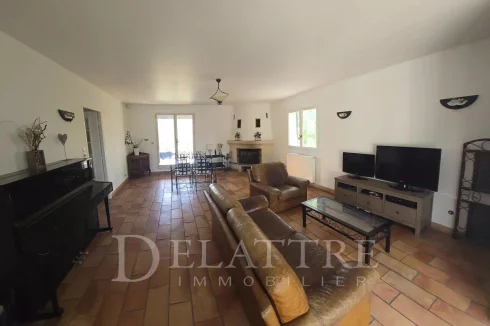 This family home with a beautiful view of the hills is composed of a beautiful living room with fireplace of approximately 43m², equipped kitchen, pantry, 4 bedrooms, 1 bathroom and 2 shower rooms, 2 toilets.