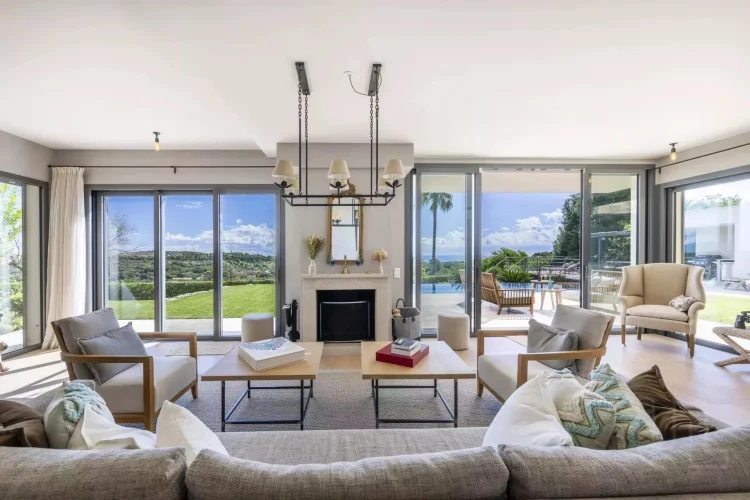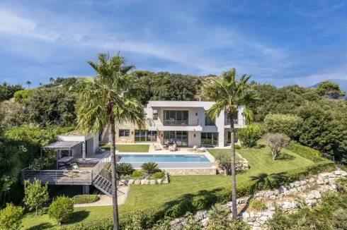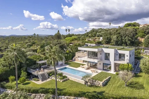 This villa offers a rare combination of sea views, complete privacy, and absolute tranquillity. Situated in a secure, gated community with 24-hour security, it benefits from excellent connections: local amenities, golf courses, tennis clubs, and both French and international schools are all within 5 to 15 minutes, while Nice Airport can be reached in just half an hour.