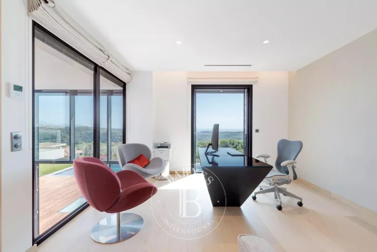 Just minutes from the iconic village of Saint-Paul-de-Vence and only 25 minutes from Nice International Airport, this contemporary residence stands out for its refined design and privileged location, offering spectacular views over the Mediterranean Sea and the rolling hills of the hinterland.