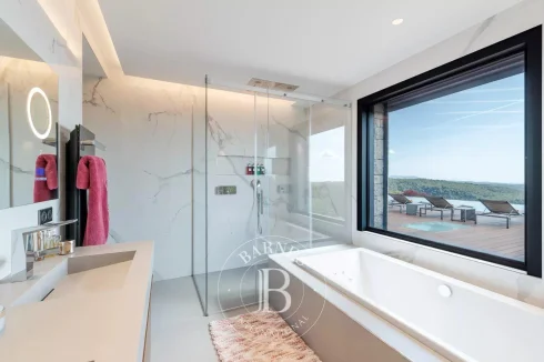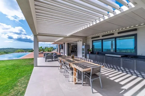 Designed by a renowned architect and built with the highest quality materials, the villa offers approximately 600 sqm of interior space. The bright and open living areas are designed for conviviality and naturally extend onto vast terraces with multiple ambiances.