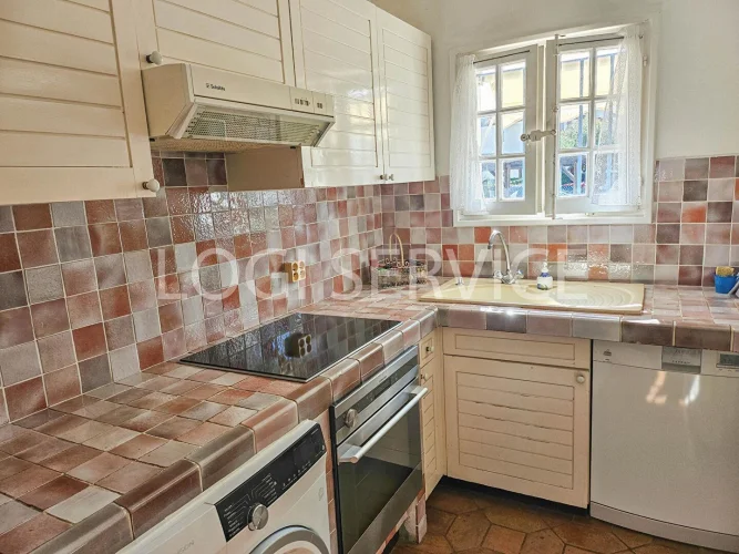 In a quiet and secure neighborhood, close to shops within walking distance, a house comprising on the ground floor an entrance hall with guest toilet, a kitchen and living room with fireplace, opening onto the terrace and the 13.40 x 4.40 m mooring.