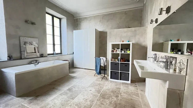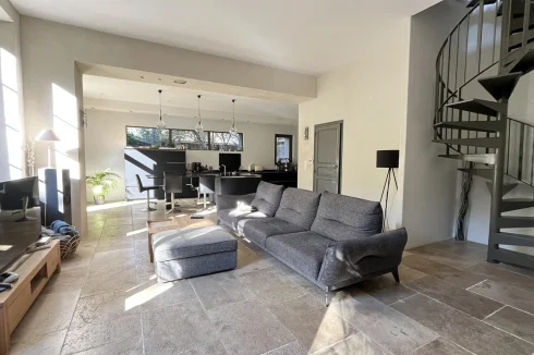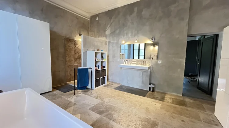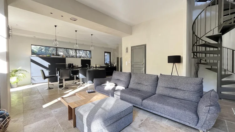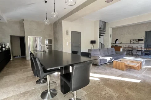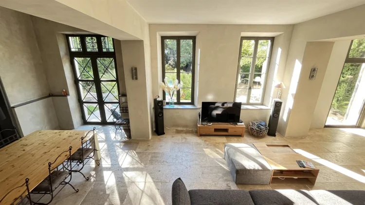 With 500 m2 of living space spread over 3 levels, it offers very generous volumes with very high ceilings and pleasant and bright living rooms.