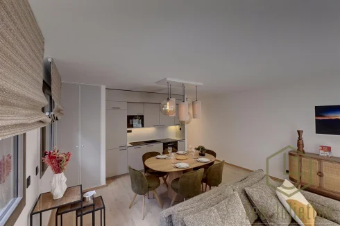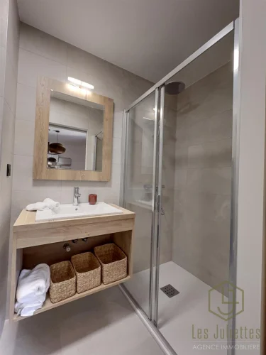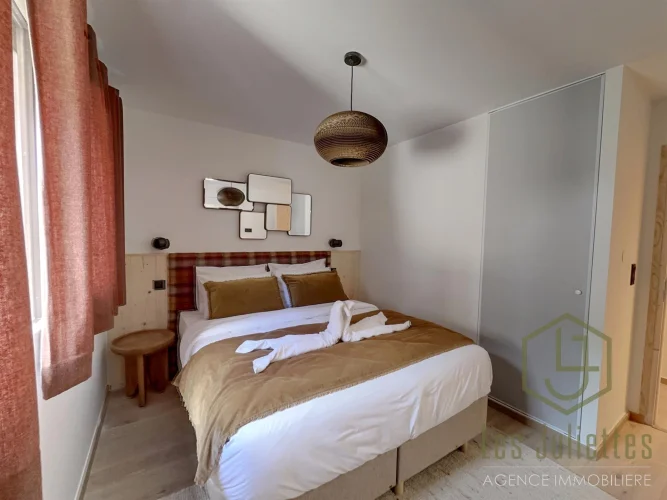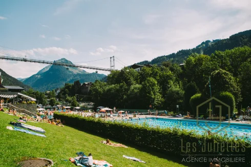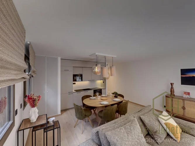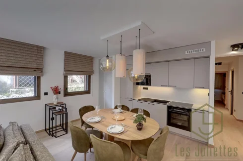 Discover this new apartment located on the ground floor of Chalet B. Composition : Entrance with cupboard Living room opening onto a 55.50m2 garden Dining room/equipped kitchen Sleeping area including: Two rooms. Two shower rooms and Wc A mountain corner of 2.89 m2 Included : A cave An indoor parking space Fully equipped kitchen and bathroom Expected Delivery : Second quarter 2025 Information on the risks to which this property is exposed is available on the Géorisks website.