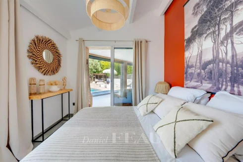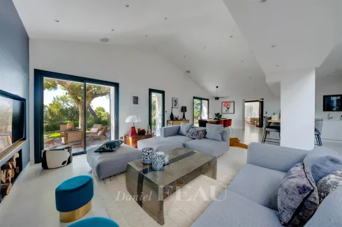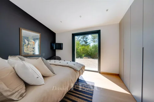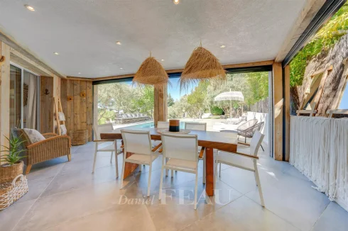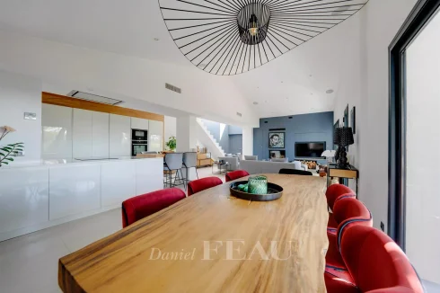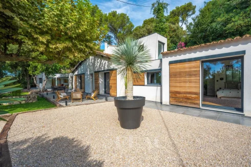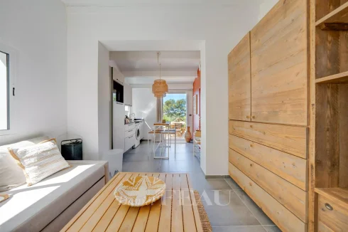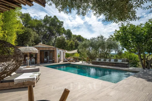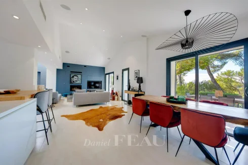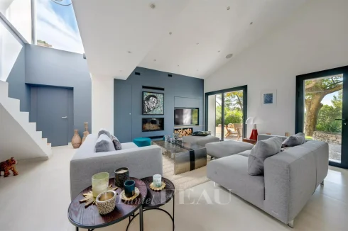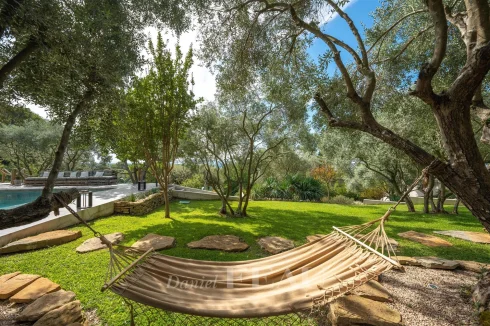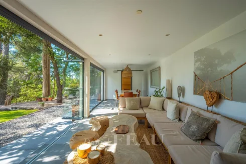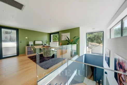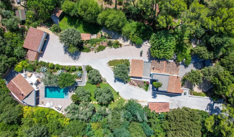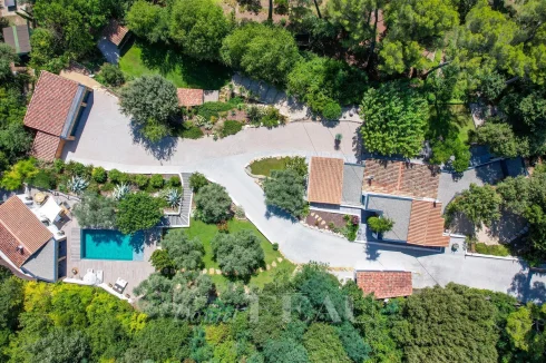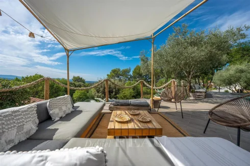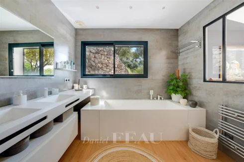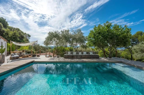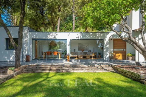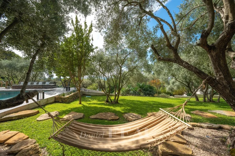 Set in an enclosed leafy 3000 sqm plot, it offers 220 sqm of south-facing living space including a spacious living/reception room with a luxurious open-plan kitchen with a central island opening onto a fitted terrace (ideal for al-fresco dining), two elegant suites, a bedroom, and a study or possible 4th bedroom.