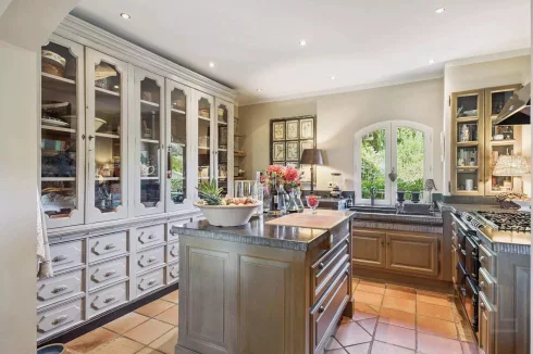 Outdoors, the beautifully landscaped garden features around a hundred olive trees, adding to the authentic Mediterranean feel of the property. A spacious terrace with a fully equipped summer kitchen invites outdoor living, while the secure swimming pool, jacuzzi and various relaxation areas create an exceptional setting to enjoy every season.