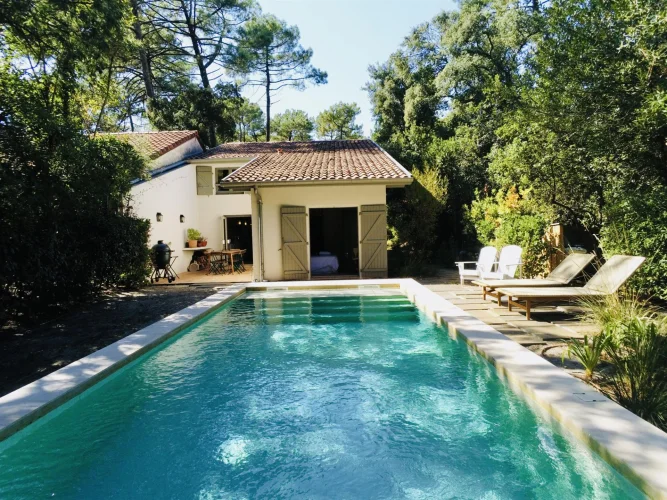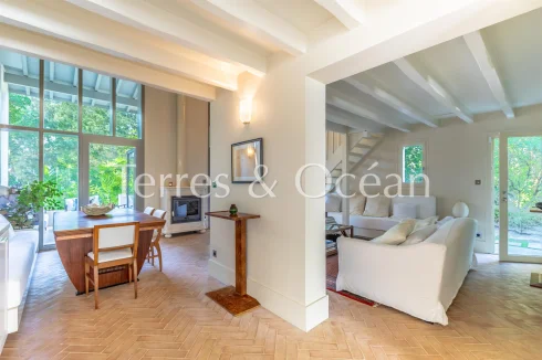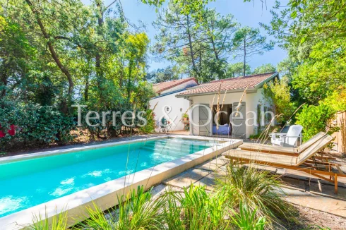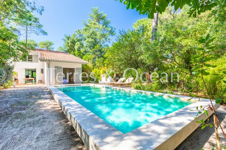Close to the most beautiful beaches, very quiet, on an intimate, wooded garden of more than 600m2. Charming house completely renovated of around 100m2 with heated swimming pool. It is made up of a sublime living room with its cathedral living room, dining room and open-plan kitchen opening onto two terraces. The sleeping area is made up of a bedroom on the ground floor and two bedrooms upstairs, all with their own bathroom. High-End renovation, quality materials. Sold fully furnished. Technical information: Information on the risks to which this property is exposed is available on the Géorisks website: Commercial agent: Lambert Trebucq (Rsac Dax) Tel: & Mathilde Vintrou (Rsac