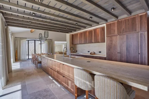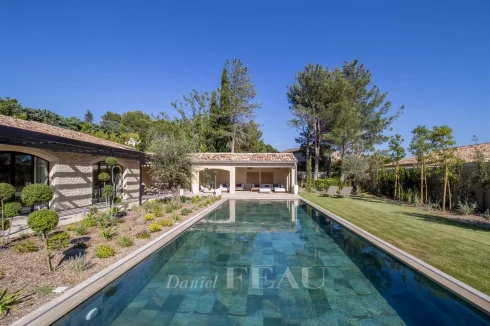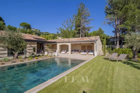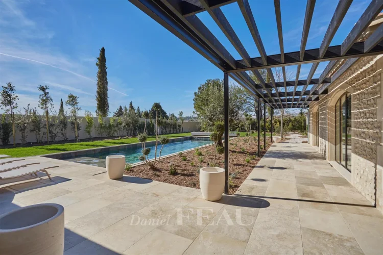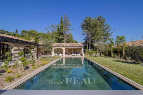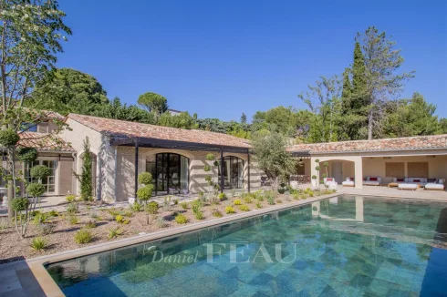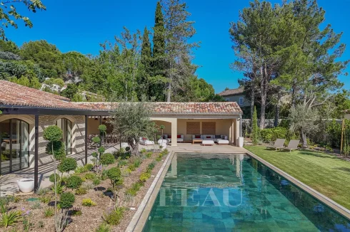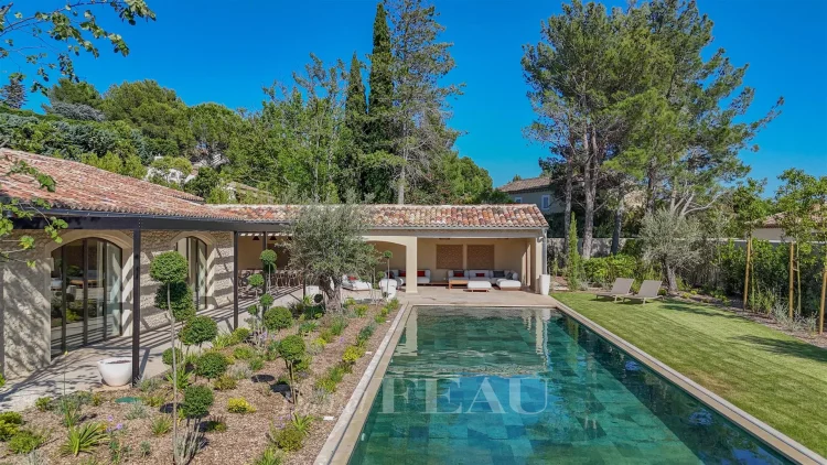 With a 3-car garage, a pool house, and a summer kitchen and lounge enjoying an open view of the Paradou hillsides.