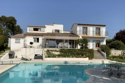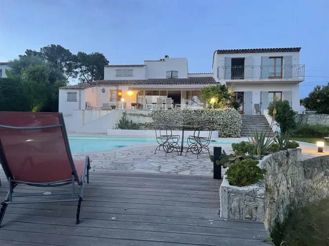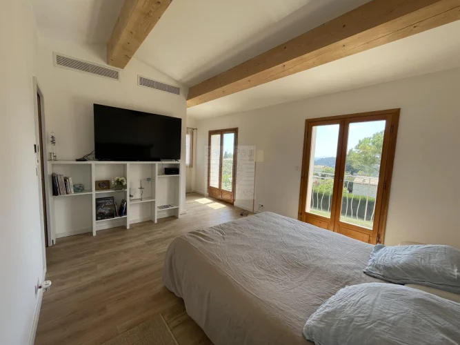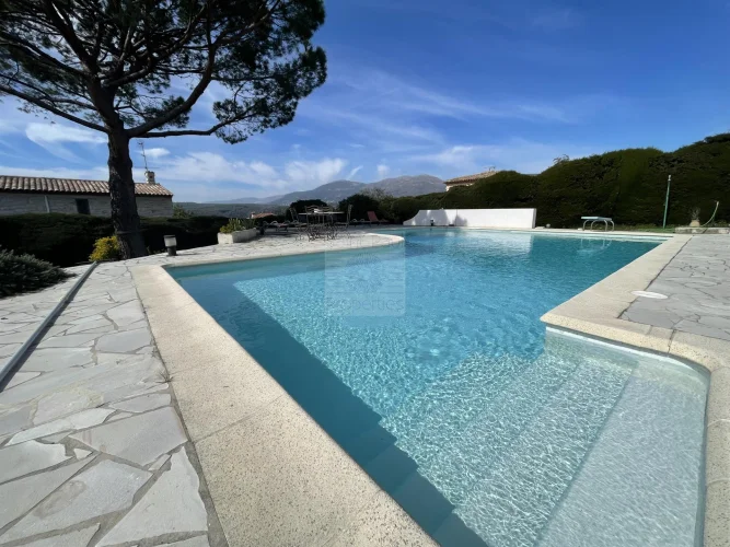 Vence South in the residential area of Malbosquet with an exceptional location, Superb Villa of 160m2 + 10m2 laundry room, facing South / West and its splendid swimming pool on a plot of approximately 1700m2, in a dominant position, 360 o view of the hills of Vence, the sea, St Paul de Vence, absolute calm, around ten parking spaces including 3 under shelters. Allow 20 minutes for Nice Côte d'Azur airport, 5 minutes from Vence and 15 minutes from the beaches. On the ground floor you will find: entrance hall with storage, 1 living room with fireplace/dining room, 1 fitted and equipped kitchen, 2 bedrooms, 1 shower room, 1 separate toilet, all opening onto the South/West facing terrace with incredible sunsets, Upstairs, 2 bedrooms (a master bedroom facing South/West/East, with dressing room, 1 shower room with toilet And 1 bedroom, 1 office, 1 toilet with water point facing South/West) This architect-designed villa was completely renovated in 2021 and its swimming pool in 2024, This exceptional property also includes a laundry room, a cellar, a 20m2 shed and a pétanque court. The villa has fiber optics, is fully air-conditioned, has mains drainage, is compliant, has automatic watering, is garden lighting, is electric gates, and is fully fenced. Only one visit will make you want to buy it!