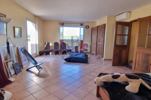 The ground floor offers a large 42 m² double living room, a fully equipped kitchen/diner opening onto a superb shaded terrace and the pool area, two ground-level bedrooms (14 and 16 m²), a bathroom, a toilet, and a spacious entrance hall. On the first floor, there is a 38 m² bedroom with its own solarium; it can be converted into two bedrooms, a shower room, and a dressing room.