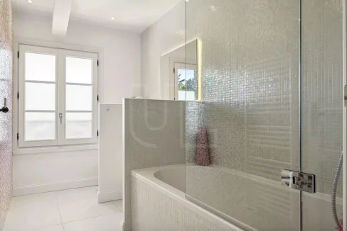This prestigious residence, spanning approximately 280 m², stands as a true masterpiece of architectural excellence. Upon entering, you are greeted by a grand entrance that leads to an expansive living room and kitchen, meticulously designed with only the finest amenities. The two bedrooms are generously sized and exude comfort, each offering captivating views over the beautifully landscaped garden. The bathroom is a sanctuary, featuring a luxurious freestanding bathtub and a walk-in shower, creating an atmosphere of ultimate relaxation. For added privacy and convenience, the toilet is separate.
