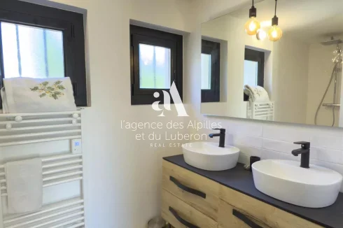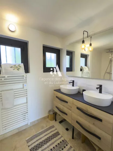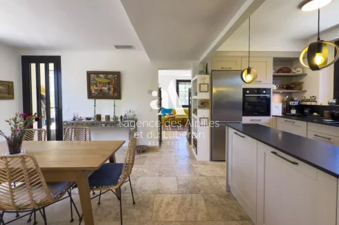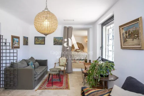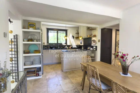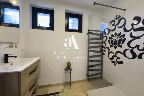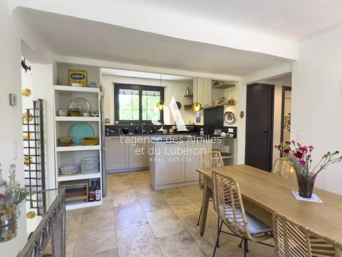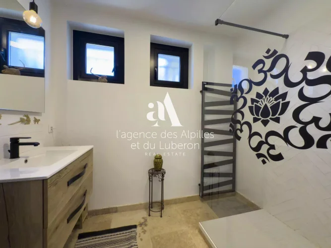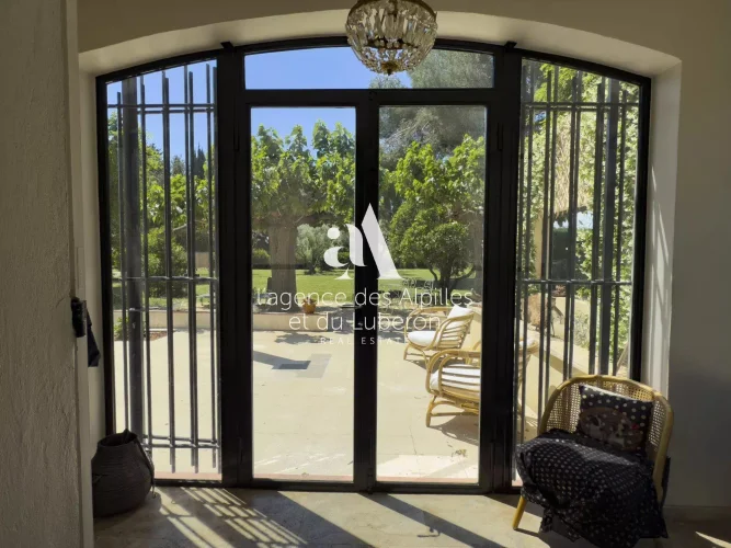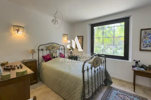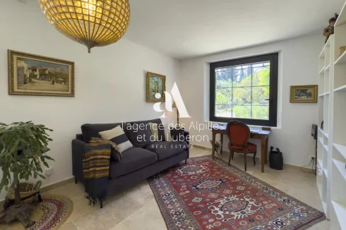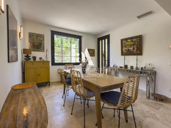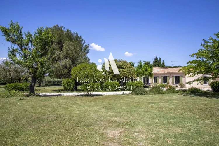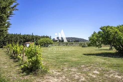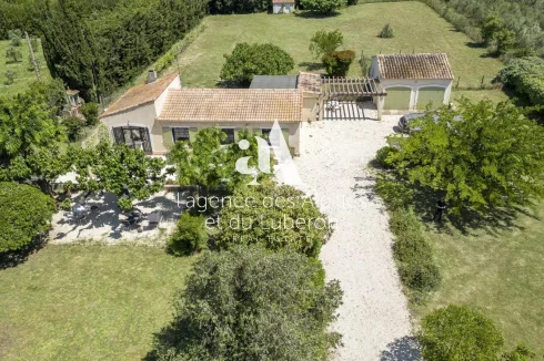 Not isolated but very quiet, this house hidden in the middle of olive fields has all the advantages of a single-storey: 2 bedrooms, 2 bathrooms, a contemporary kitchen/ dining room, a living room with fireplace, a large office (or third bedroom) of 23 m2 on a single plan of approximately 120 m2. In an annex, there is a garage of 45 m2 in which a extra bedroom or office could set. The garden of more than 5,500 m2 is completely enclosed. A nice view, different terraces, beautiful trees are the promise of beautiful hours spent in this garden where the construction of a pool would be allowed. A comfortable home away from the noise and bustle.