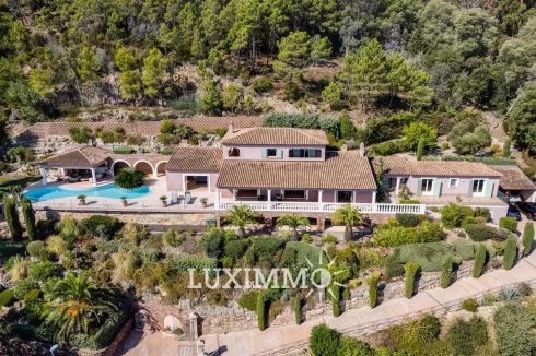 Theoule-Sur-Mer - Situated in a dominant position, in a green setting, a few minutes from the beaches, this 340m² villa with 138m² of annexes is built on a 4280m² plot with swimming pool and pool house.