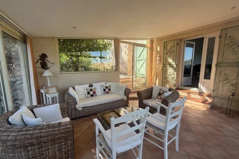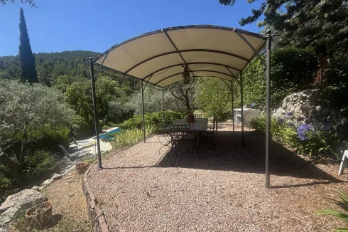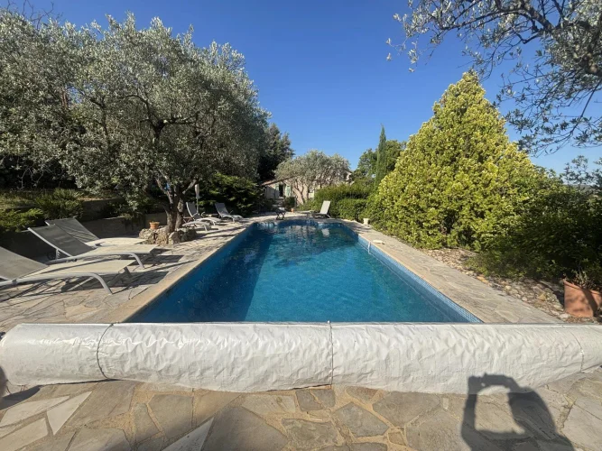 Outside, the swimming pool area and its shaded arbour invite you to dine al fresco in a peaceful atmosphere. Everything here exudes happiness. Why not you?