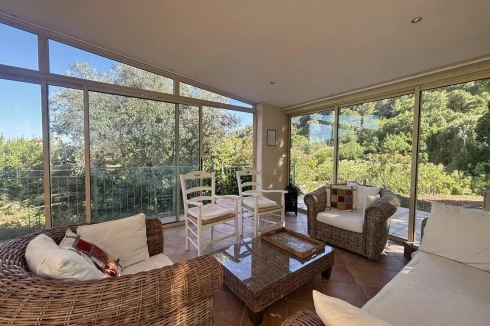 Sit in the bright veranda, surrounded by oleanders and agapanthus, and let yourself be lulled by the song of the birds. Silence is king.