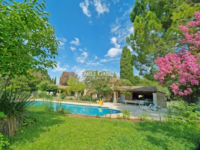 Located in the countryside at the foot of the Luberon, easily accessed from the nearest road, this magnificent Provençal farmhouse presents the perfect blend of authenticity and period charm. This authentic stone farmhouse offers a total of 250 sq.m of living area including an entry hall, a spacious living room of 45 sq.m, a dining room, a delightful Provençal kitchen, an office and three bedrooms. There is also a very large bedroom (53 sq.m) with a fireplace, mezzanine and shower room, which could be converted into its own independent quarters. The property has several annexes/outbuildings including a beautiful 28 sq.m laundry room (which could be converted into an artist's studio), a 16 sq.m cellar in the basement, a large 43 sq.m garage with mezzanine, a magnificent 63 sq.m covered terrace adjoining the house, a pool house and several carports. This charming old farmhouse sits on 12,800 sq.m of leafy enclosed land, home to many wild species (peacocks, geese, ducks, etc.). The private grounds are made up of several areas: a swimming pool (14 x 5m) with pool house, a large meadow, a paddock, a pond, a beautiful orchard, an aviary, and more. This is the countryside in its purest form! A property that will appeal to all lovers of nature and authenticity.