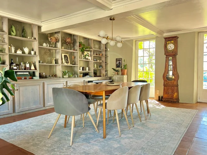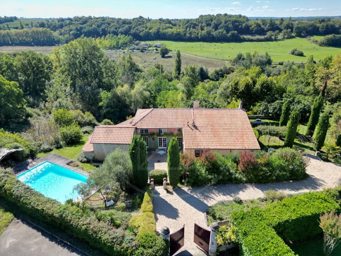 The gardens are thoughtfully designed as a series of outdoor 'rooms', each with its own distinct character: a charming rose garden, a productive vegetable plot, and a swimming pool with sun terrace perfectly positioned to take advantage of the spectacular countryside backdrop.
