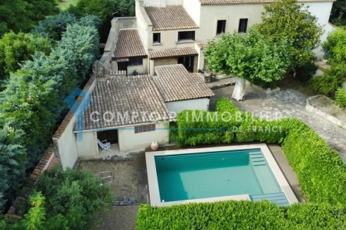 The agency in Provence in Boulbon is pleased to present to you an old farmhouse from the 1900s The wooded property is accessible through a large wrought iron gate and has a swimming pool surrounded by greenery. The farmhouse includes a living room with a stone fireplace, a separate kitchen, rooms to be converted, 4 bedrooms upstairs, annexes and more. to discover it!