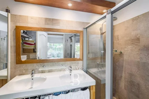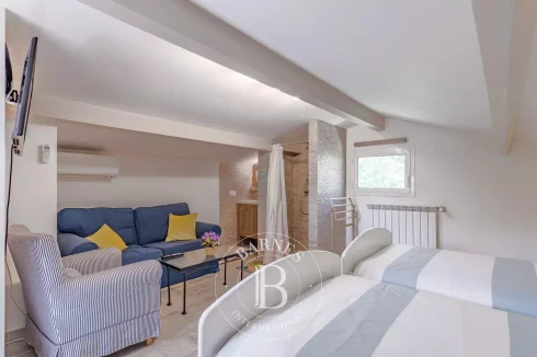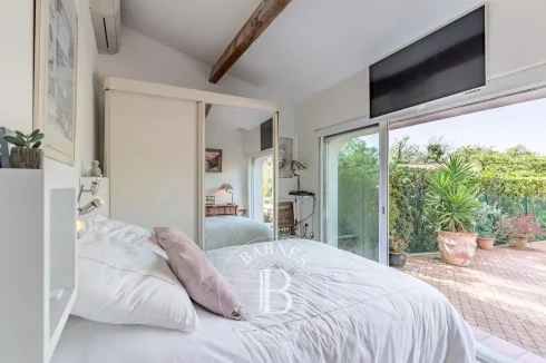 The main house of 150 sq.m offers a large living room with fireplace, a fully equipped independent kitchen opening onto a bioclimatic veranda, a bedroom on one level with a walk-in shower as well as a master bedroom upstairs with bathroom and terrace with view of the garden and swimming pool.
