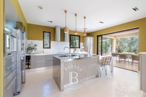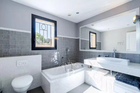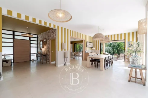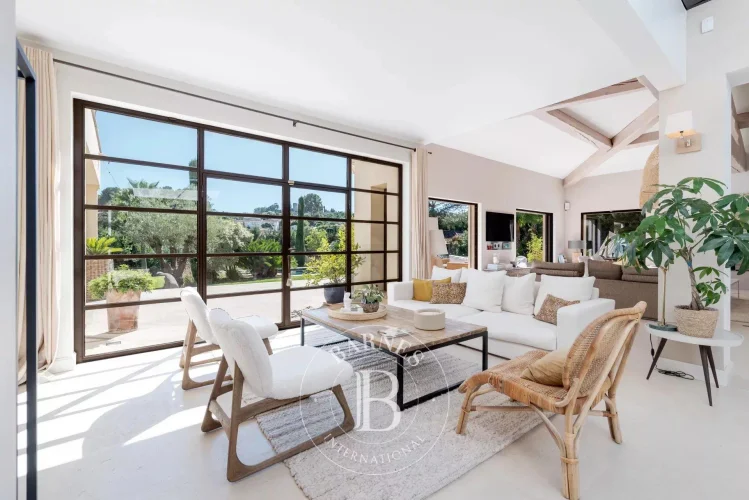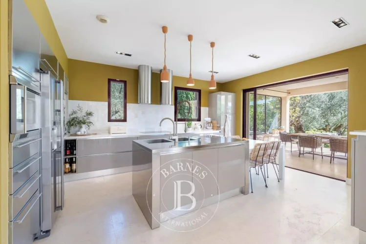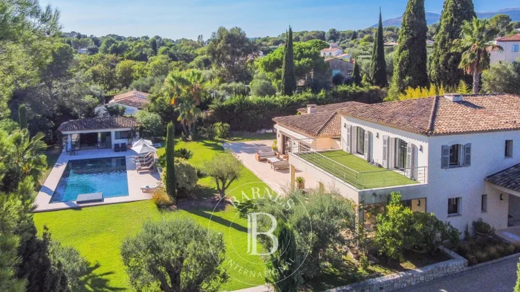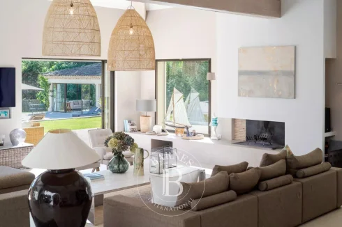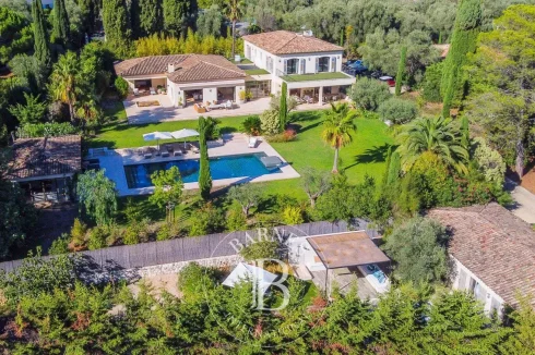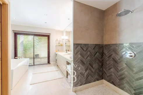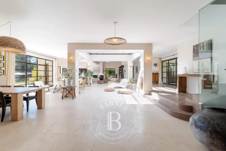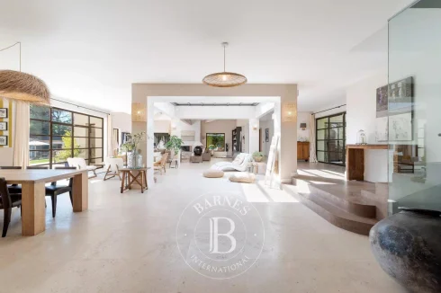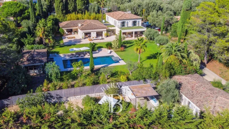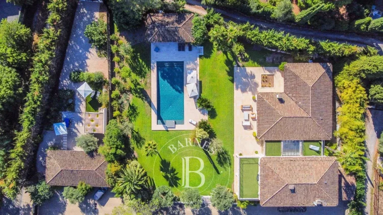 The main villa of approx. 445 sq.m plus basement of 180 sq.m offers a huge reception area of almost 200 sq.m bathed in light opening onto large terraces with several relaxation areas with swimming pool, fully equipped kitchen opening onto covered terrace, master bedroom with dressing room and en-suite bath/shower room opening onto terrace, another bedroom or study with en-suite shower room, upstairs 4 other large bedrooms with en-suite bathrooms, 2 opening onto terrace, in the basement playroom or sports room, wine cellar, storage, cellar, technical room, and possibility to fit out a cinema.