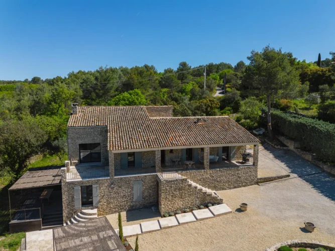 In Gordes, in a particularly calm and preserved environment, beautiful stone house with swimming pool, enjoying panoramic views of the Luberon and the Alpilles.