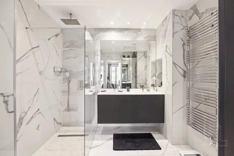 The apartment comprises three bedrooms, including a master suite complete with its own shower room and toilet for added privacy and comfort. A second modern shower room and a guest toilet enhance the property’s functionality, making it perfectly suited for everyday living or holiday stays.
