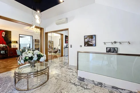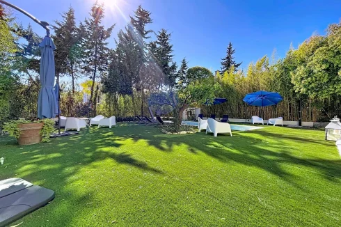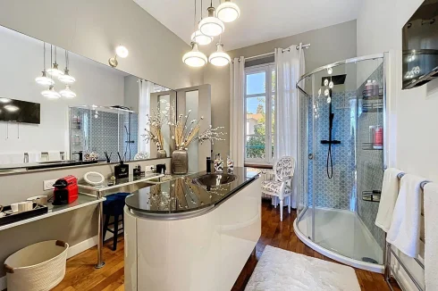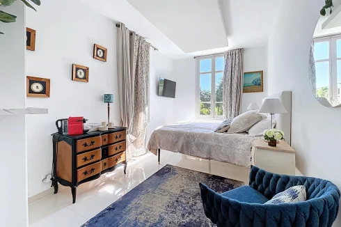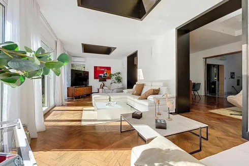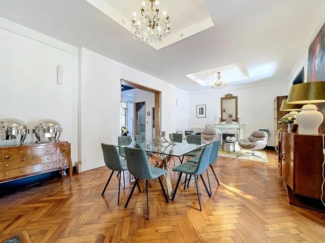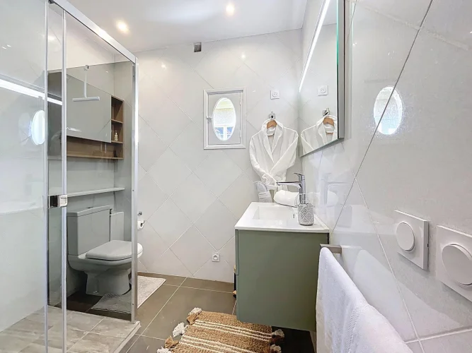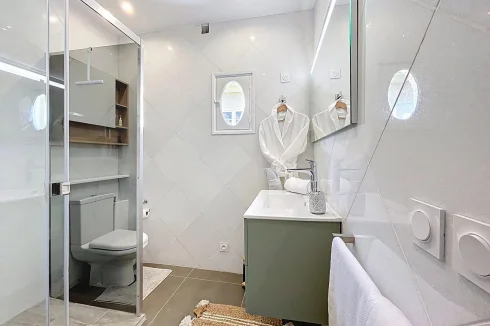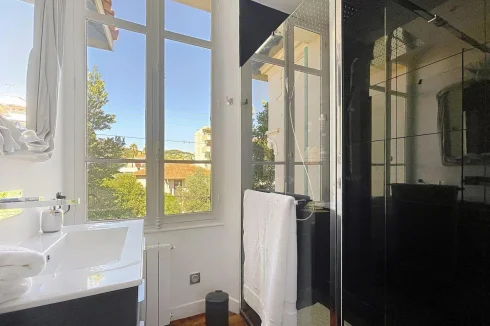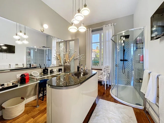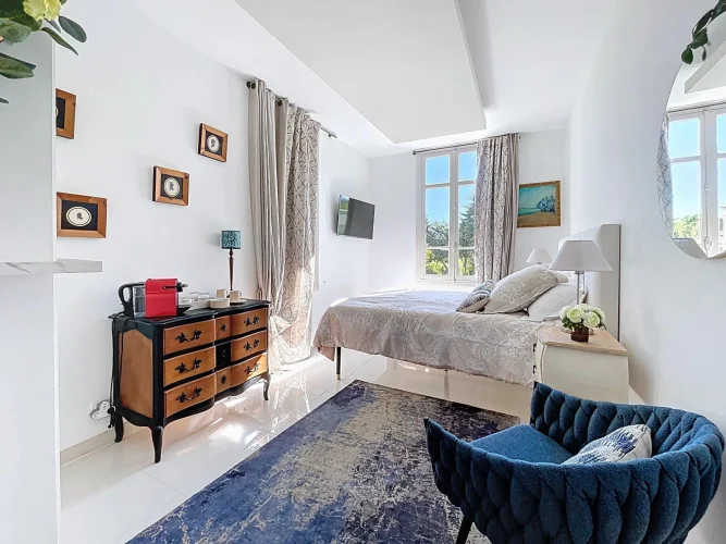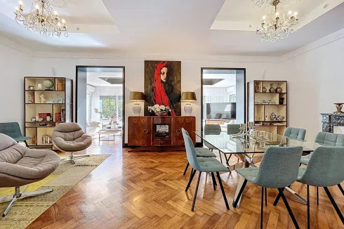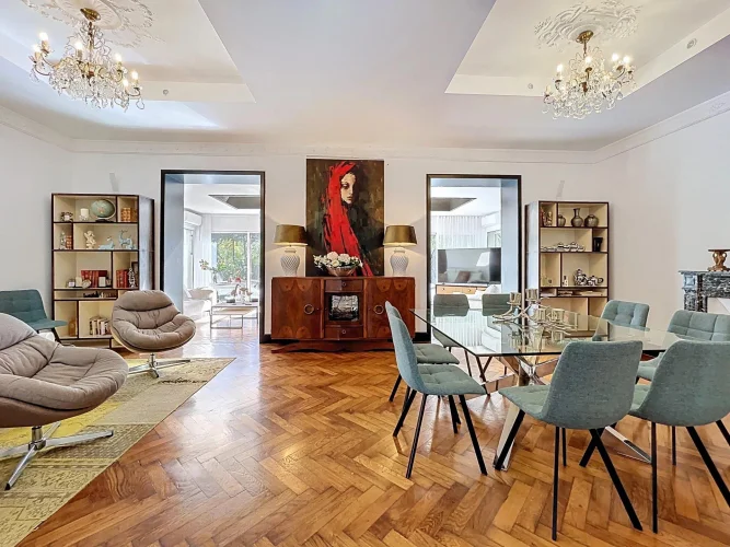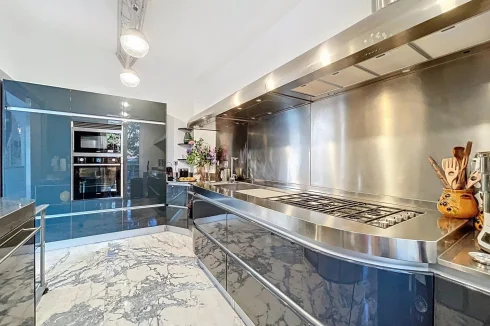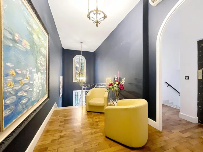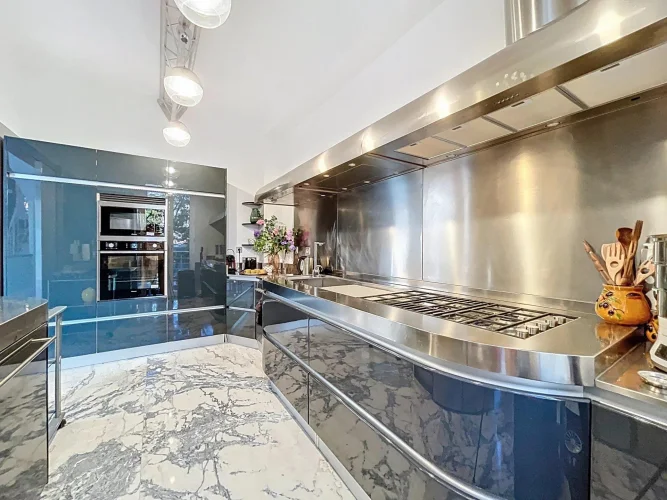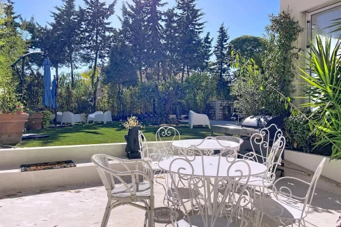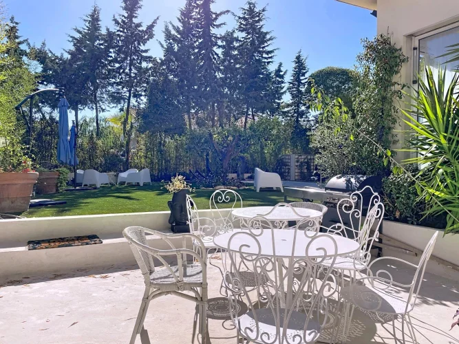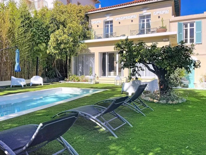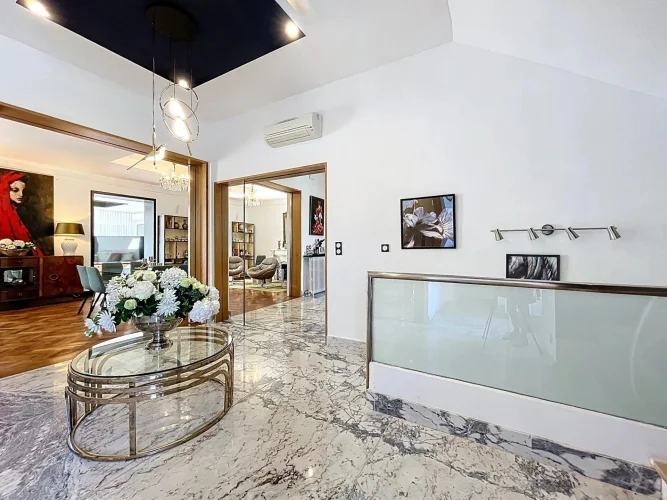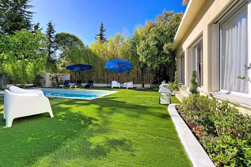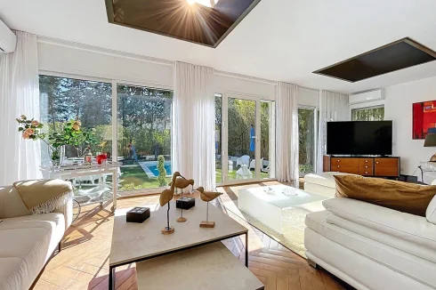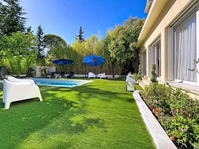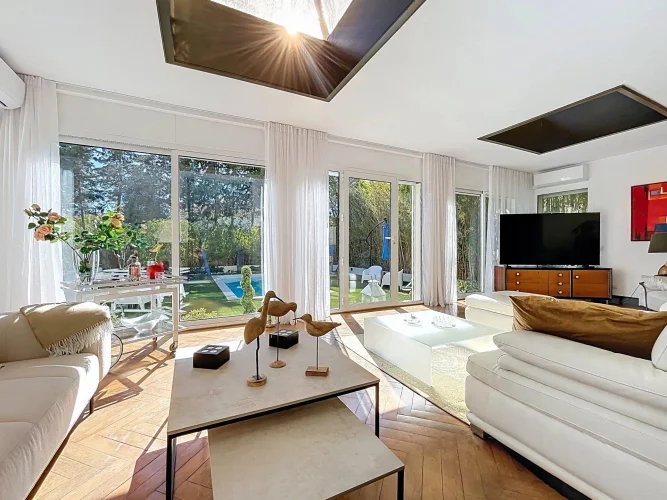 Built on a south-facing 600 m² garden with a swimming pool, the villa offers disabled access with an elevator.