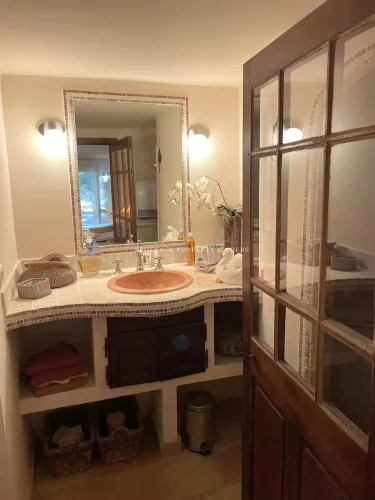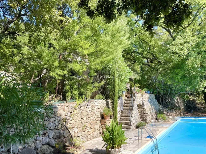 Set on a beautifully landscaped plot of over 4700 m², it will captivate those who appreciate fine materials and period features: exposed stone walls, magnificent antique wooden doors, traditional beams… every detail adds to the warm and genuine character of the home.