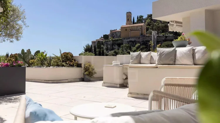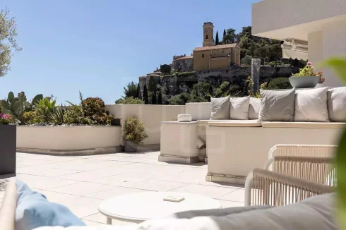 Situated in one of the most coveted areas of the Côte d'Azur, this magnificent penthouse flat in Eze offers an exceptional opportunity to acquire a piece of prestigious real estate. Boasting a large south-facing terrace, the property enjoys panoramic views over the enchanting village of Eze and the sparkling Mediterranean Sea, providing an idyllic setting for both relaxation and entertainment.