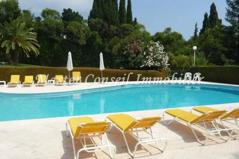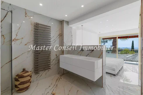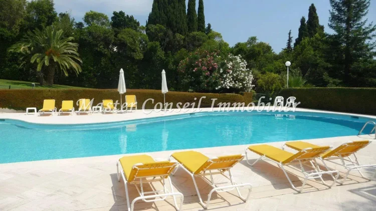 Set within a 3-hectare park featuring a swimming pool and tennis courts, this exceptional residence provides a peaceful setting with no overlooking neighbors. The apartment boasts two terraces, including a main terrace with breathtaking panoramic sea views stretching from the Lérins Islands to the Esterel hills.