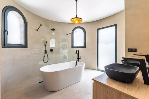 The villa itself has been fully restored to the highest standards, showcasing a harmonious balance of elegance and contemporary comfort. The accommodation comprises four spacious bedrooms, complemented by a well-appointed bathroom and two stylish shower rooms. The heart of the home is a luminous, open-plan living area, where an elegant rotunda and feature fireplace create a welcoming ambience, enhanced by an abundance of natural light that floods the space through expansive glazed openings.