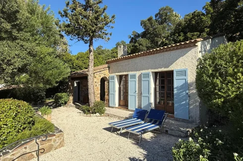 Exclusive Agnes Malecki Agency - Cavalaire Residential Sector pretty single-story villa of approximately 80m2 with a beautiful sea view facing South with wooded grounds of 940m2 and large garage. It invites you with Entrance, living room / dining room opening onto a semi-covered terrace with sea view, separate fitted kitchen with French window, hallway, 02 bedrooms with wardrobes, separate toilet, bathroom, bedroom transformed into a laundry room with shower room. Very Nice Exposure And Sea View!