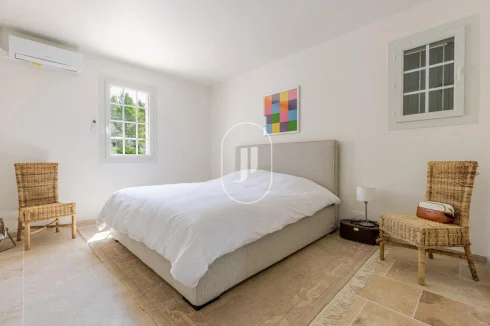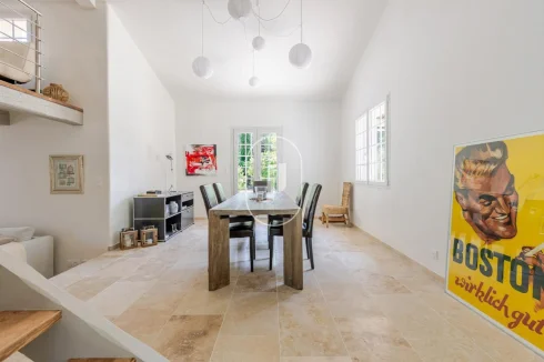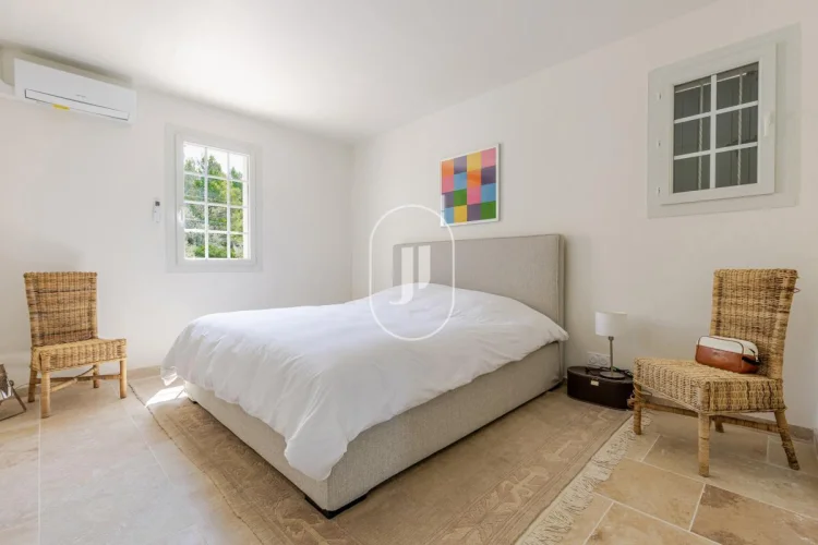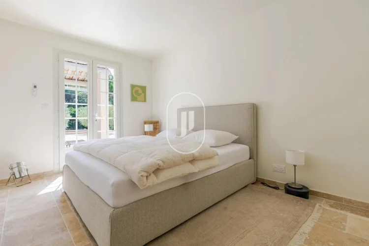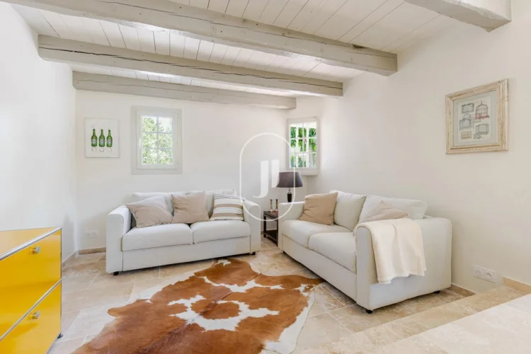 The interior is arranged on a single level, designed for conviviality and smooth circulation. The spacious living room, enhanced by exposed beams, opens widely onto the garden and enjoys abundant natural light. The fully equipped kitchen is both spacious and functional. The villa offers two bedrooms, one shower room, and one bathroom.