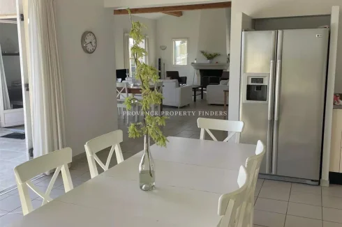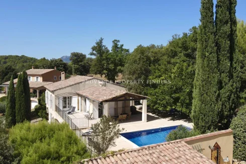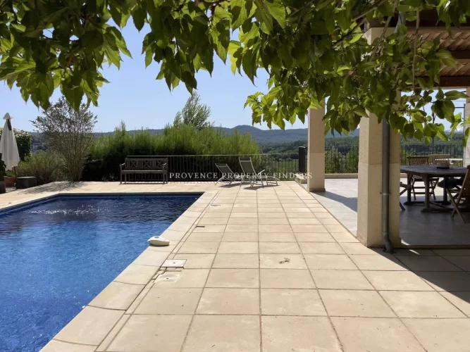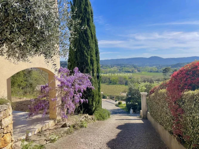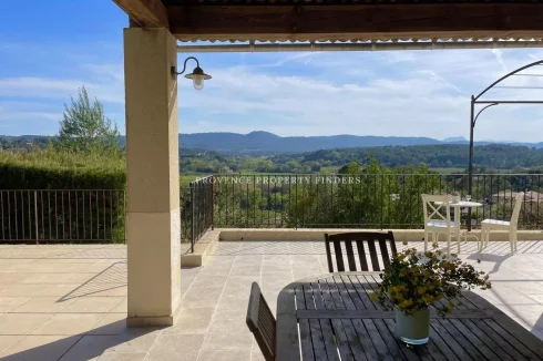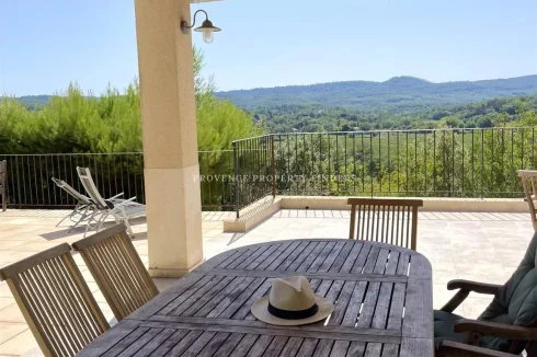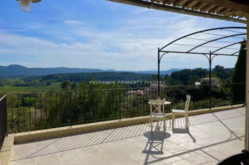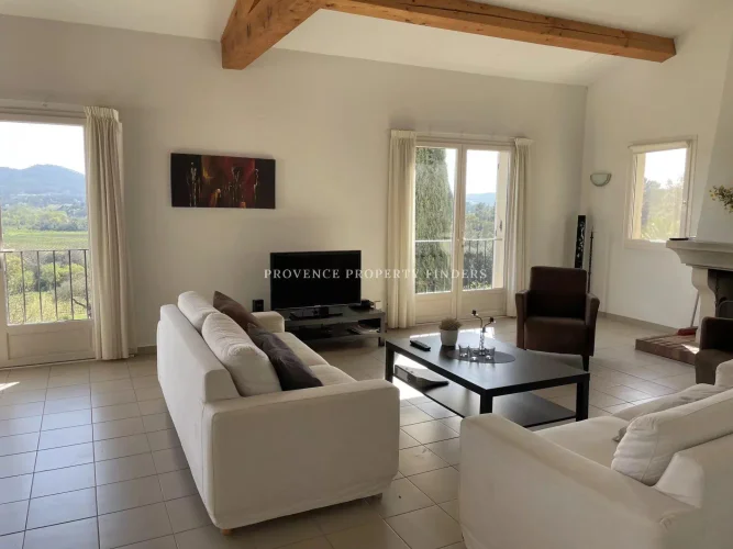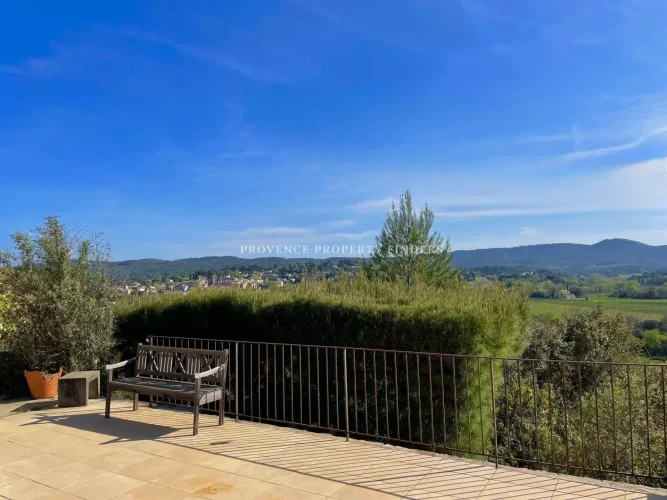 A fantastic holiday home in the heart of Provence. Overlooking the vineyards and the beautiful village of Carcès. Perfectly located between Lorgues and Cotignac. The house is in a quiet residential area and offers a spacious entrance, a large sunny living room with a fireplace, an open kitchen with access to the outside. Underfloor heating. 4 spacious bedrooms, including the master bedroom on the same level, 2 bathrooms, a laundry room, and a pantry. Outside, you can enjoy the stunning view from the swimming pool (8x4). Large terraces and an easy-to-maintain garden of approximately 1275 m². The house is ready to move in. New photos will be posted in the coming weeks.