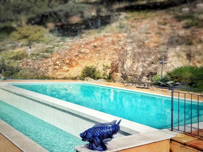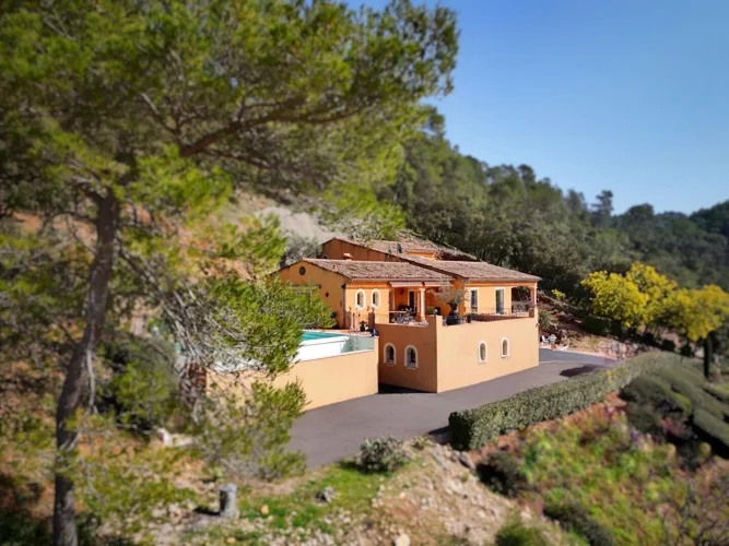 Briel & Partners offers you: In Vidauban, superb house offering generous spaces, breathtaking views and quality services. Let yourself be seduced by the charm and comfort of this spacious residence. Composed of a large garage of approximately 100sqm on the ground floor, a workshop and a cellar, an elevator or the staircase will allow you to access the main house, located on the 1st floor. Discover a large living room with kitchen, opening onto a large terrace allowing you to enjoy the view and the swimming pool. You will also find a sleeping area made up of 2 bedrooms, one of which has its own terrace as well as a large laundry room with dressing room which can become a third bedroom and a bathroom. Take a custom stone staircase and access a hall leading to two other bedrooms, a bathroom and an upstairs terrace. Completely peacefully located, nothing is missing from this property, except its future owners. Call us to visit it.