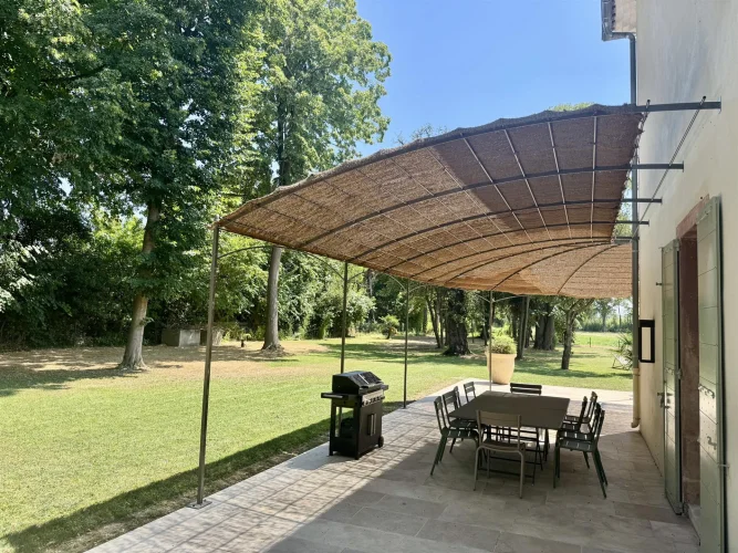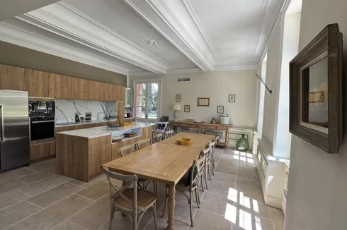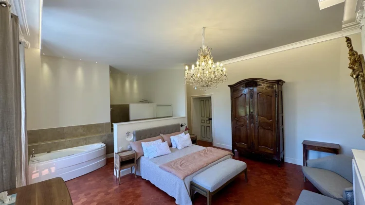 Magnificent property of approximately 1.5 hectares located in a countryside environment made up of woods. The bourgeois house of approximately 300 m2 has been completely renovated, respecting the original structure, preserving its period features and adding modern comforts. On 2 levels the garden level distributes the sumptuous living spaces, a large open and fully equipped kitchen, dining room and living room, an en suite bedroom and a laundry room. The whole complex faces the garden and benefits from beautiful light. The other 4 en-suite bedrooms are on the 1st floor. The woodwork and ceiling moldings are original and have been beautifully restored, with high ceilings, quality materials, and unparalleled comfort. The park is planted with local species and the beautifully landscaped garden features a heated swimming pool with pool house and summer kitchen. Turnkey property, it is sold furnished.