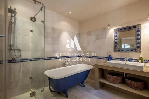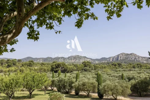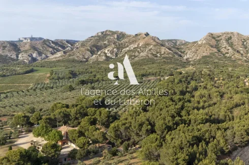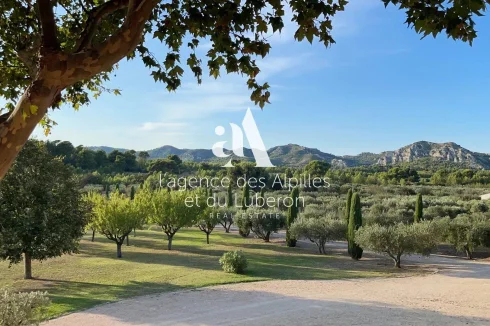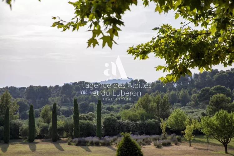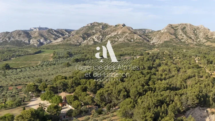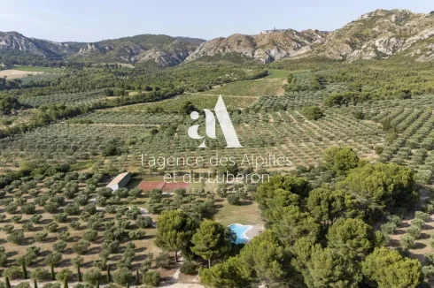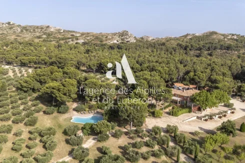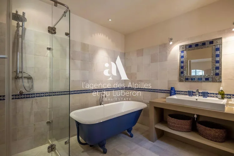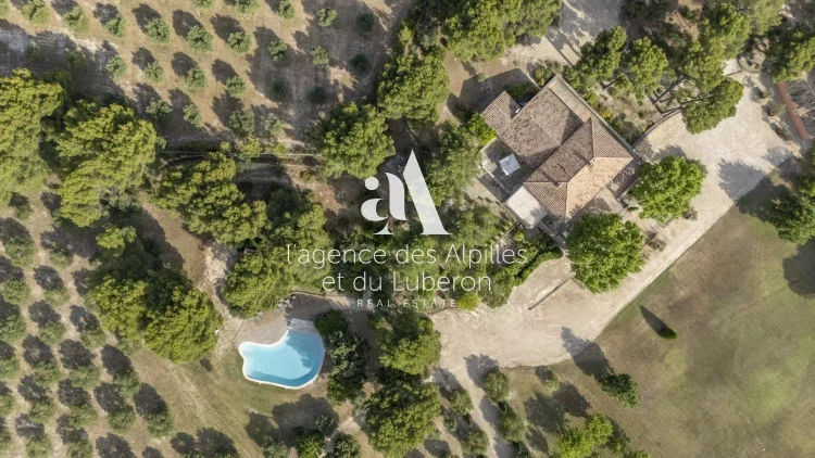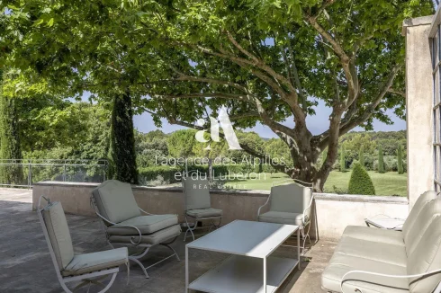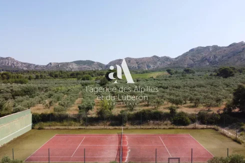 In the heart of the regional park of the Alpilles and under the benevolent protection of the castle of Les Baux, this elegant house sets on 570 m2 living space. With its park of 3 ha fully enclosed, this property is located in an idyllic site where silence, space and light make up a melodious and knowledgeable alchemy with Mother Nature. The main house has 2 different living rooms, 1 family and practical equipped kitchen, 1 dining room, 5 large bedrooms with 5 bathrooms/toilets, and a 6th bedroom that can be used as an office or music room. An independent studio, a sauna and a hammam, a vast garage, a wine cellar, and a gardian’s house of about 70 m2 add to the good capacity of reception, comfort and security of the property. The garden, organized between olive grove, landscaped park and various terraces, invites its guests to enjoy its lovely swimming pool, tennis and pétanque in the cheerfulness of this welcoming nature, fragrant and frothing birds and cicadas. A warm house touched by the grace of this unique and emblematic place of the Alpilles.